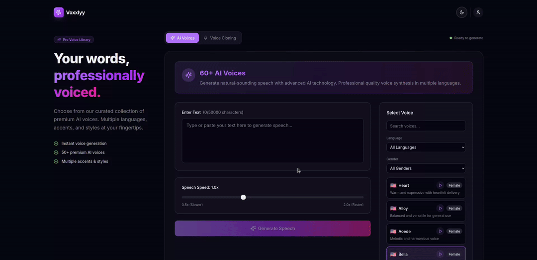 Clone any voice in seconds. Speak in 23+ languages. Professional AI voices at your fingertips.